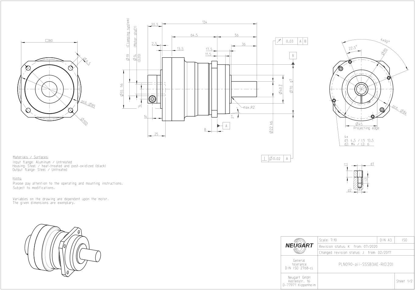 Example of basic dimension drawing of some models of PLN planetary gearbox: